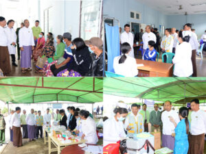 ရှမ်းပြည်နယ်အစိုးရအဖွဲ့၏ ဦးဆောင်မှုဖြင့် ကလောမြို့နယ်အထူးကုဆရာဝန်ကြီးများက ဘော်ဆိုင်းဒေသခံ ပြည်သူများအား ဇွန်(၄)ရက် နံနက်(၈)နာရီက ကလောမြို့နယ်၊ ဘော်ဆိုင်းမြို့ပြည်သူ့ဆေးရုံတွင် ဆေးကုသစမ်းသပ် ပေးနေမှုကို ရှမ်းပြည်နယ်ဝန်ကြီးချုပ် ဦးအောင်အောင်၊ ပြည်နယ်လုံခြုံရေးနှင့်နယ်စပ်ရေးရာဝန်ကြီး၊ ပြည်နယ် လူမှုရေးရာဝန်ကြီး၊ ခရိုင်၊ မြို့နယ်အဆင့်ဌာနဆိုင်ရာများနှင့် တာဝန်ရှိသူတို့က ဆေးလာရောက်ကုသနေသော ဒေသခံ ပြည်သူများကို ကြည့်ရှုအားပေးစကားပြောကြားခဲ့ပြီး ဘော်ဆိုင်းပြည်သူ့ဆေးရုံအတွက် ပြည်နယ်ဝန်ကြီးချုပ် ဦးအောင်အောင် က ထောက်ပံ့ငွေပေးအပ်ရာ ဘော်ဆိုင်းပြည်သူ့ဆေးရုံ ဆရာဝန်ကြီးနှင့် ဆရာမများမှ လက်ခံရယူကြ သည်။