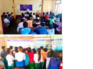 ထို့နောက် ကျောင်းသား၊ကျောင်းသူများအားကျောင်းစာအပြင်၊ပြင်ပဗဟုသုတများတိုးပွားစေရေးအတွက် လူကုန်ကူးမှုဆိုင်ရာနှင့်ကလေးအလုပ်သမားပပျောက်ရေးဝိုင်းဝန်းကူညီစောင့်ရှောက်ပေးအသိပညာပေးနံရံကပ်စာစောင်များပြသခဲ့ရာ ကျောင်း သား၊ကျောင်းသူများစိတ်ပါဝင်စားစွာလေ့လာဖတ်ရှု့ခဲ့ကြကြောင်းသိရသည်။