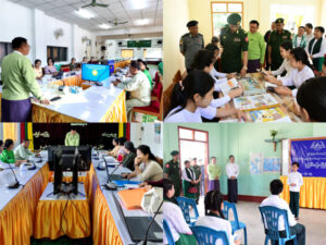 ဆက်လက်၍ နေ့လည် (၂) နာရီတွင် ရှမ်းပြည်နယ်အရှေ့ပိုင်း၊ ကျိုင်းတုံမြို့၊ ပြည်နယ်ဒုတိယအထွေထွေအုပ်ချုပ်ရေးဦးစီးဌာန(ကျိုင်းတုံ)ရုံး၊ အစည်းအဝေးခန်းမတွင် ကျင်းပပြုလုပ်သော ၂၀၂၆ ပညာသင်နှစ်၊ သူနာပြု-သားဖွား ဒီပလိုမာ(၃)နှစ် သင်တန်းနှင့် ဘက်စုံသားဖွားဒီပလိုမာ(၂)နှစ် သင်တန်း တက်ရောက်ရန်အတွက် ဝင်ခွင့်စီစစ်ရွးချယ်ရေး လုပ်ငန်းညှိနှိုင်းအစည်းအဝေးသို့ ပြည်နယ် အစိုးရအုပ်ချုပ်ရေးအဖွဲ့ခွဲ(ရှမ်းမရှေ့)၊ ဥက္ကဋ္ဌ၊ ပြည်နယ်သူနာပြု/သားဖွားဒီပလိုမှာဝင်ခွင့် ရွေးချယ်စီစစ်ရေးအဖွဲ့ ၊ဥက္ကဌ၊ ဦးတင်လင်း သည် ပြည်နယ်သူနာပြု/သားဖွားဒီပလိုမှာဝင်ခွင့် ရွေးချယ်စီစစ်ရေးအဖွဲ့၊ ကော်မတီဝင်များ တက်ရောက်ခဲ့ကြပြီး အစည်းအဝေးတွင် ပြည်နယ်သူနာပြု/သားဖွားဒီပလိုမှာဝင်ခွင့် ရွေးချယ်စီစစ်ရေးအဖွဲ့၊ ဥက္ကဌ ဦးတင်လင်း မှ အဖွင့်အမှာစကားပြောကြားပြီးနောက် တက်ရောက်လာကြသည့် ကော်မတီဝင်များမှ ကဏ္ဍတစ်ခုချင်းအလိုက် ဆောင်ရွက်လျက်ရှိသည့် လုပ်ငန်းကိစ္စရပ်များအား Power Point ဖြင့် ရှင်းလင်းတင်ပြခဲ့မှုအပေါ် ပြည်နယ်သူနာပြု/ သားဖွားဒီပလိုမှာဝင်ခွင့် ရွေးချယ်စီစစ်ရေးအဖွဲ့၊ ဥက္ကဌ မှလိုအပ်သည်များ ဆွေးနွေးညှိနှိုင်း ပေါင်းစပ်ဆောင်ရွက်ပေးခဲ့ပါကြောင်း သိရှိရသည်၊၊