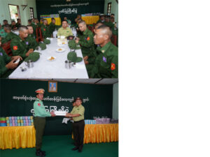 ကျိုင်းတုံမြို့၊ အမှတ်( ၁၁ )တပ်မတော် တန်းမြင့်လေ့ကျင့်ရေးကျောင်း၊ စစ်ရေးပြကွင်းတွင် ဩဂုတ် ( ၁၈ ) ရက် နံနက်( ၈ ) နာရီတွင် ပြည်သူ့စစ်မှုထမ်းအမှတ်စဉ် ( ၁၆/ ၂၀၂၅ ) သင်တန်းဖွင့်ပွဲအခမ်းအနား ကျင်းပပြုလုပ်ခဲ့ရာ အခမ်းအနားသို့ ပြည်နယ်အစိုးရအုပ်ချုပ်ရေး အဖွဲ့ခွဲ ( ရှမ်းအရှေ့ )၊ ဥက္ကဌ၊ ဦးတင်လင်း သည် တြိဂံဒေသတိုင်းစစ်ဌာနချုပ်၊ တိုင်းမှူး၊ ဗိုလ်မှူးချုပ်စိုးလှိုင် နှင့် စစ်ဘက်အရာရှိကြီးများ၊ ပြည်နယ်အစိုးရအုပ်ချုပ်ရေးအဖွဲ့ခွဲ ( ရှမ်းအရှေ့ )၊ အဖွဲ့ဝင်များ၊ နယ်ဘက်ဌာနဆိုင်ရာအကြီးအကဲများ၊ တာဝန်ရှိသူများနှင့်အတူတက်ရောက်ခဲ့ပြီး အခမ်းအနားတွင် အမှတ် ( ၁၁ ) တပ်မတော်တန်းမြင့်လေ့ကျင့်ရေးကျောင်း၊ ကျောင်းအုပ်ကြီး မှ သင်တန်းဖွင့်မိန့်ခွန်းပြောကြားခြင်း၊ တြိဂံဒေသတိုင်းစစ်ဌာနချုပ်၊ တိုင်းမှူး၊ ဗိုလ်မှူးချုပ်စိုးလှိုင် မှ သင်တန်းသားများအတွက် အားကစားပစ္စည်းများပေးအပ်ခြင်း၊ ပြည်နယ်အစိုးရအုပ်ချုပ်ရေးအဖွဲ့ခွဲ ( ရှမ်းအရှေ့ )၊ ဥက္ကဌ၊ ဦးဇော်လွင်ဦး မှ ရှမ်းပြည်နယ်အစိုးရအဖွဲ့မှ ထောက်ပံ့ငွေ ( ၂၀,၅၀၀,၀၀ဝိ/- ) ကျပ်အား ကျောင်းအုပ်ကြီးသို့ လွှဲပြောင်းပေးအပ်ခြင်း၊ ဒုတိယကျောင်းအုပ်ကြီး မှ သင်တန်းသားများအတွက် တစ်ကိုယ်ရေသုံးပစ္စည်းများ ထောက်ပံ့ပေးအပ်ခြင်း၊ ပြည်သူ့စစ်မှုထမ်းသင်တန်းသားများအား ရင်းရင်းနှီးနှီး လိုက်လံနှုတ်ဆက်အားပေးစကားပြောကြားခြင်းနှင့် နံနက်စောစာအား အတူ သုံးဆောင်ခြင်းများဆောင်ရွက်ခဲ့ပြီး ( ၀၈၃၀ ) နာရီအချိန်တွင် အခမ်းအနား အောင်မြင်စွာပြီးမြောက် ကြောင်း သိရှိသည်။