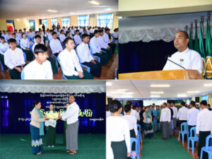 မောင်မယ်သစ်လွင်ကြိုဆိုပွဲအခမ်းအနားတွင် ရှမ်းပြည်နယ်ဝန်ကြီးချုပ်ဦးအောင်အောင်က ပညာရေး ခရီးလမ်းကြောင်းတွင် အရည်အသွေးပြည့်ဝသည့် ဆရာကောင်းများပေါ်ထွက်ရေးအတွက် ဆရာအတတ် ပညာဌာနများက စနစ်တကျလေ့ကျင့်ပေးနိုင်ရန် အလွန်ပင်အရေးကြီးပါကြောင်း၊ နိုင်ငံအတွက်ပညာအခြေ ပြု လူ့စွမ်းအားအရင်းအမြစ်များဖြစ်သည့် ဆရာအတတ်ပညာ အရည်အသွေးပြည့်ဝသောဆရာများ မွေးထုတ်ပေးနိုင်အောင် ပညာရေးဒီဂရီကောလိပ်များမှာ (ပထမနှစ်မှစတုတ္ထနှစ်ထိ) ၄နှစ်သင်ကြားရမည့် သင်ရိုးသစ်များကို အခြေခံပညာသင်ရိုးသစ်များနှင့် အံဝင်ဂွင်ကျဖြစ်သည်အထိ ပညာရှင်များစွာနှင့် နိုင်ငံတော်အဆင့်ရေးဆွဲပြီး သင်တန်းများမှာ လေ့ကျင့်ပေးနေခြင်းဖြစ်ပါကြောင်း၊ ၄ နှစ်သင်တန်းပြီးစီးသည့် အခါ B.A/ B.SC (Education) ဘွဲ့ပေးအပ်ပြီး အလယ်တန်းပြဆရာအဖြစ် ခန့်အပ်တာဝန် ပေးအပ်မှာ ဖြစ်ကြောင်း၊ ယခုနှစ် ပညာသင်နှစ်တွင် ပထမနှစ်ဝင်ခွင့်ရရှိသည့် အမျိုးသား(၂၃)ဦး၊ အမျိုးသမီး(၅၂)ဦး၊ စုစုပေါင်း(၇၅)ဦး၊ ဒုတိယနှစ်မှ စတုတ္ထနှစ်ထိ (၆၃၉)ဦး၊ စုစုပေါင်း(၇၁၄)ဦးသော ကျောင်းသား၊ ကျောင်းသူတို့အနေဖြင့် နိုင်ငံတိုးတက်အောင်တည်ဆောက်ပေးနိုင်မည့် အနာဂတ်နိုင်ငံ့သားကောင်းများကို မွေးထုတ် ပေးနိုင်မည့် ဆရာကောင်းများဖြစ်အောင် ကြိုးစားလေ့ကျင့်သင်ယူကြရန်ပြောကြားသည်။