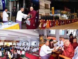 ထို့နောက် ပြည်နယ်ဝန်ကြီးချုပ်နှင့် တာဝန်ရှိသူများသည် ဌာနဆိုင်ရာများ၊ အလှူရှင်များ၊ ဒေသခံပြည်သူများမှ ဆရာတော်၊ သံဃာတော်များအား ဆွမ်းနှင့်ဆွမ်းဟင်းများ၊ ခေါက်ဆွဲခြောက်များ၊ သစ်သီးများ၊ အချိုပွဲများလောင်းလှူနေမှုကို လှည့်လည်ကြည့်ရှုကြပြီး ဆွမ်းလာရောက် လောင်းလှူကြသူများအား ရင်းရင်းနှီးနှီးနှုတ်ဆက်ကြသည်။