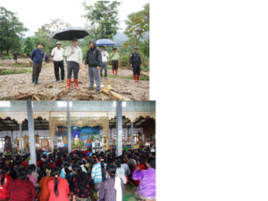 ရှေးဦးစွာ သိမ်ကုန်းကျေးရွာအုပ်စု၊အုံအက်ကျေးရွာအတွင်း လယ်ယာမြေများပျက်စီးမှု အခြေအနေများကိုသွားရောက်ကြည့်ရှုကာ စိုက်ပျိုးမြေများအချိန်မီ ပြန်လည်စိုက်ပျိုးနိုင်ရန်အတွက် ဓနုကိုယ်ပိုင်အုပ်ချုပ်ခွင့်ရဒေသဦးစီးအဖွဲ့ဥက္ကဌ၏လမ်းညွှန်မှုဖြင့်ရေနှုတ်မြောင်းများ တူးဖော်နေမှုကိုသွားရောက်ကြည့်ရှုပြီး လိုအပ်သည်များကို လမ်းညွှန်မှာကြားခဲ့သည်။
