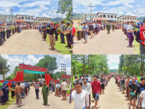 ရှမ်းပြည်နယ်တောင်ပိုင်း ပအိုဝ်းကိုယ်ပိုင်အုပ်ချုပ်ခွင့်ရဒေသ ပင်လောင်းမြို့နယ်တွင် ပြည်သူ့စစ်မှုထမ်း အမှတ်စဉ်(၃/၂၀၂၄) သင်တန်းတက်ရောက်မည့် သင်တန်းသားများအား ကြိုဆိုနှုတ်ဆက်ပွဲကို ဇွန်လ(၂၂)ရက် နံနက် ၁၁ နာရီအချိန်က အမှတ်(၄) စစ်အခြေခံလေ့ကျင့်ရေးသင်တန်း‌ကျောင်း၌ ပြုလုပ် သည်။