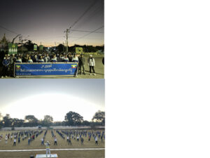 အဆိုပါပြည်သူလူထုစုပေါင်းလမ်းလျှောက်ပွဲတွင်ပါဝင်ခဲ့ကြသူများမှမြို့နယ်ပြည်သူ့အားကစားကွင်းတွင်အားကစားမှူးနှင့် ဝန်ထမ်းများ၏ ဦးဆောင်မှုဖြင့် အကြောလျှော့ လေ့ကျင့်ခန်းများနှင့် ကိုယ်လက်ကြံ့ခိုင်ရေး လေ့ကျင့်ခန်းများကို တစ်ပျော်တစ်ပါးစုပေါင်းပြုလုပ်ခဲ့ကြကြောင်း သိရသည်။