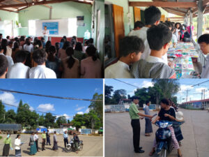 ထို့နောက် အပြည်ပြည်ဆိုင်ရာသန့်ရှင်းနေသာလေထုနေ့ အထိမ်းအမှတ် လက်ကမ်းစာစောင် (၅၀၀)စောင်အား ပတ်ဝန်ထိန်းသိမ်းရေးကော်မတီဝင်များက ဒေသခံပြည်သူများ၊ ကျောင်းသား၊ ကျောင်းသူများ၊ ဆရာ/ဆရာမများနင့် ဒေသတွင်း သွားလျက်ရှိသော ခရီးသည်များအား ဖြန့်ဝေ ပေးခဲ့သည်။ အဆိုပါ လက်ကမ်းစာစောင်တွင် အပြည်ပြည်ဆိုင်ရာသန့်ရှင်းသော လေထုနေ့ဖြစ်ပေါ် လာပုံနှင့် ရည်ရွယ်ချက်၊ ပတ်ဝန်းကျင်လေထုညစ်ညမ်းမှုကို ဖြစ်စေနိုင်သော အကြောင်းအရင်းများ၊ လေထုညစ်ညမ်းမှုကြောင့် ဖြစ်ပေါ်လာနိုင်သည့် ကျန်းမာရေးဆိုးကျိုးများ၊ လေထုညစ်ညမ်းမှုကို လျော့ချနိုင်သည့် နည်းလမ်းများ စသည့်အကြောင်းအရာများပါဝင်ကြောင်း သိရသည်။
