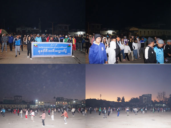 ထိုသို့ဆောင်ရွက်ရာတွင် မြို့နယ်စီမံအုပ်ချုပ်ရေးအဖွဲ့ ဥက္ကဋ္ဌ ဦးမြင့်ထွန်းနှင့် အဖွဲ့ဝင်များ၊ မြို့နယ်အဆင့်ဌာနဆိုင်ရာများ၊ ဒေသခံပြည်သူများ၊ ကျောင်းသား၊ ကျောင်းသူများ စုပေါင်း၍ ကိုယ်လက်ကြံ့ခိုင်ရေး အတွဲ(၁)၊ အတွဲ(၂)နှင့် Fitness Dance အကများဖြင့် တပျော်တပါးပါဝင် ဆင်နွှဲခဲ့ကြကြောင်းသိရသည်။