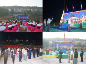 ထို့နောက် (၇၇)နှစ်မြောက် ပြည်ထောင်စုနေ့ သဝဏ်လွှာဖတ်ကြားခြင်းအခမ်းအနားကို ဆက်လက်ကျင်းပရာ စစ်ရေးဂုဏ်ပြုတပ်ခွဲမှ တပ်ခွဲမှူးဦးဆောင်၍ ပအိုဝ်းကိုယ်ပိုင်အုပ်ချုပ်ခွင့်ရ ဒေသ စီမံအုပ်ချုပ်ရေးအဖွဲ့ ဥက္ကဋ္ဌ ဦးခွန်ရဲထွေးနှင့် အဖွဲ့ဝင်များ၊ ဟိုပုံးမြို့နယ်စီမံအုပ် ချုပ်ရေးအဖွဲ့ ဥက္ကဋ္ဌ ဦးမြင့်ထွန်းနှင့် အဖွဲ့ဝင်များ၊ ဆီဆိုင်မြို့နယ်စီမံအုပ်ချုပ်ရေးအဖွဲ့ ဥက္ကဋ္ဌ ဦးအောင်ဆန်းဦးနှင့် အဖွဲ့ဝင်များ၊ ဒေသ/မြို့နယ်အဆင့်ဌာနဆိုင်ရာများ၊ ပအိုဝ်းကိုယ်ပိုင်အုပ်ချုပ်ခွင့်ရဒေသ မိခင်နှင့် ကလေးစောင့်‌ရှောက်ရေးအသင်းနှင့် အမျိုးသမီးရေးရာအဖွဲ့၊ ကျောင်းသား၊ ကျောင်းသူများ၊ ပအိုဝ်း စာပေးနှင့် ယဉ်ကျေးမှုအဖွဲ့ ၊ ရှမ်းစာပေနှင့်ယဉ်ကျေးမှုအဖွဲ့ ၊ လီဆူစာပေနှင့် ယဉ်ကျေးမှုအဖွဲ့၊ လူမှုရေးအသင်းအဖွဲ့၊ ရပ်ကွက်/ကျေးရွာအုပ်စု အုပ်ချုပ်ရေးမှူးများနှင့် ဒေသခံပြည်သူများက မြန်မာနိုင်ငံတော်အလံနှင့် ကျဆုံးလေပြီးသော ခေါင်းဆောင်ကြီးများ၊ တပ်မတော်သားများအား အလေးပြုခဲ့ကြပြီးနောက် ပအိုဝ်းကိုယ်ပိုင်အုပ်ချုပ်ခွင့်ရဒေသ စီမံအုပ်ချုပ်ရေးအဖွဲ့ ဥက္ကဋ္ဌ ဦးခွန်ရဲထွေးက နိုင်ငံတော်စီမံအုပ်ချုပ်ရေးကောင်စီ ဥက္ကဋ္ဌ နိုင်ငံတော်ဝန်ကြီးချုပ် ဗိုလ်ချုပ်မှူးကြီး သတိုးမဟာသရေစည်သူ သတိုးသီရိသုဓမ္မ မင်းအောင်လှိုင်ထံမှ ပေးပို့လာသည့် (၇၇)နှစ်မြောက် ပြည်ထောင်စုနေ့သဝဏ်လွှာအား ဖတ်ကြားခဲ့ကြောင်းသိရသည်။ ယင်းနောက် ပအိုဝ်းကိုယ်ပိုင်အုပ်ချုပ်ခွင့်ရဒေသ စီမံအုပ်ချုပ်ရေးအဖွဲ့ အတွင်းရေးမှူး ဦးတင်ထူးမောင်နှင့် ပအိုဝ်းကိုယ်ပိုင်အုပ်ချုပ်ခွင့်ရဒေသ စီမံအုပ်ချုပ်ရေးအဖွဲ့ အဖွဲ့ဝင် ဒုတိယဗိုလ်မှူးကြီး ညီညီတင်တို့က စစ်ရေးပြဂုဏ်ပြုတပ်ခွဲနှင့် ဘင်ခရာအဖွဲ့တို့ကို ချီးမြှင့်ငွေများပေးအပ်ခဲ့ကြသည်။