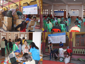 ရှမ်းပြည်နယ်(တောင်ပိုင်း)၊ ပအိုဝ်းကိုယ်ပိုင်အုပ်ချုပ်ခွင့်ရဒေသ ဟိုပုံးမြို့နယ်တွင် ယာယီတိုက်ပွဲရှောင်ပြည်သူများကို ကုလသမဂ္ဂ ကမ္ဘာ့စားနပ်ရိက္ခာအစီအစဉ် (WFP)မှ စားသောက် ကုန်ပစ္စည်းများထောက်ပံ့ပေးအပ်ခြင်းကို မတ်လ(၆)ရက် နံနက် ၁၀ နာရီအချိန်က သီရိမင်္ဂလာသာသနာ့ဗိမာန် တွင် ထောက်ပံ့ပေးအပ်ခဲ့ကြသည်။