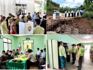 ထို့နောက် ကျိုင်းတုံမြို့မှ မိုင်းယောင်းခရိုင်၊ မိုင်းယုတံတားမှ မိုင်းယုမြို့မဘုန်းတော်ကြီးကျောင်းသို့ ဆက်လက်ထွက်ခွာလာရာ ဒေသခံပြည်သူများအား မြန်မာအီလက်ထရောနစ်မဲပေးစက်(MEVM) ကိုင်တွယ်အသုံးပြုနည်း၊ လက်တွေ့ကိုင်တွယ်စမ်းသပ်မဲပေးခြင်း၊ မဲရလဒ်များထုတ်ပြန်ခြင်း စသည့်လုပ်ငန်းစဉ်များကို တာဝန်ရှိသူများမှ ဆောင်ရွက်နေမှုနှင့် ဒေသခံပြည်သူများ၏ လက်တွေ့ သရုပ်ပြ မဲပေးခြင်းဆောင်ရွက်နေမှုအခြေအနေများအား ကြည့်ရှုအားပေးခဲ့ပြီး လိုအပ်သည်များ လမ်းညွှန်မှာကြားဆောင်ရွက်ခဲ့ပြီး မိုင်းယုမြို့ထွေ/အုပ်ရုံးသို့ ဆက်လက်ထွက်ခွာလာရာ ဝန်ထမ်းများနှင့် တွေ့ဆုံ၍ လိုအပ်သည်များ လမ်းညွှန်မှာကြားကာ ချီးမြှင့်ငွေများပေးအပ်ခဲ့ပြီး ဆက်လက်၍ မြို့အဆင့်ဌာနဆိုင်များနှင့်တွေ့ဆုံခဲ့ပြီး ဌာနဆိုင်ရာများ၏ တင်ပြချက်များအပေါ် လိုအပ်သည်များလမ်းညွှန်မှာကြားဆောင်ရွက်ခဲ့ပါကြောင်း သိရှိရသည်။