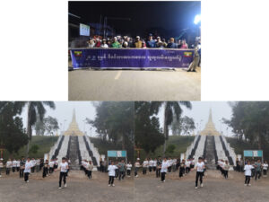 အဆိုပါ လမ်းလျှောက်ပွဲတွင် မြို့နယ်စီမံအုပ်ချုပ်ရေးအဖွဲ့ဥက္ကဋ္ဌ၊ မြို့နယ်အုပ်ချုပ်ရေးမှူး ဦးဟန်ဇော်မြင့် ဦးဆောင်မှုဖြင့် ဌာနဆိုင်ရာအကြီးအကဲများ၊ ရုံးဝန်ထမ်းများ၊ ကျောင်းသား/သူများနှင့် ဒေသခံပြည်သူများတို့က မြို့မဈေးရှေ့မှ မဟာတေဇာဓိပတိစေတီတော်ကြီးအထိ စုပေါင်းလမ်းလျှောက်ခဲ့ကြပြီး စုစုပေါင်း လူအင်အား (၄၁၀)ခန့်တို့က သွေးပူလေ့ကျင့်ခန်းများ လုပ်ဆောင်ခဲ့ကြပြီး ကျောင်းသား/သူများက Physical Fitness Exercises အကများ ဆောင်ရွက်ခဲ့ကြကြောင်း သိရသည်။