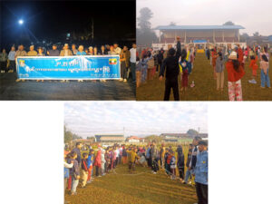 ထိုသို့ ကျင်းပရာတွင် မြို့နယ်စီမံခန့်ခွဲရေးနှင့်အုပ်ချုပ်ရေးကော်မတီဉက္ကဌ ဦးစိုးမင်းအောင် နှင့် အဖွဲ့ဝင်များ၊ ဌာနဆိုင်ရာများ၊ ဆရာ၊ဆရာမများ၊ ဒေသခံပြည်သူများနှင့် ကျောင်းသား၊ကျောင်း သူများသည် မြို့လယ်မဟာဗောဓိရွှေစေတီနှင့်ဆုတောင်းပြည့်ဘုရားကိုဆူစေတီမှ စတင် တာထွက်ရာ မိုင်းရယ်-ကျေးသီးသွား ကားလမ်းအတိုင်း အ.မ.က(နားလီ)အထိ စုပေါင်း လမ်းလျှောက်ကြပြီး မြို့နယ်အားကစားကွင်း၌ ပန်းဝင်၍ ကိုယ်ကာယလေ့ကျင့်ခန်းများပြုလုပ်ခဲ့ကြသည်။