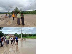 မိုင်းဆတ်ခရိုင်၊မိုင်း ဆတ်မြို့နယ်၊မယ် ပုလုံကျေး ရွာအုပ်စု ရှိ မိုင်းဆတ်-တာချီလိပ်ကားလမ်း နမ့်ကျန့် တံတား ချင်းကပ်ခုံ အနီး ၁၅ပေ ခန့် ကားလမ်း ပြတ် တောက်မှု နှင့် ကားလမ်း ပေါ် ရေကျော် မူအခြေ အနေအား ဇူလိုင်လ(၁၆) ရက် နံနက် (၁၀)နာရီတွင် ခရိုင်စီမံအုပ်ချုပ်ရေးအဖွဲ့ ဥက္ကဋ္ဌ ဦးညီညီထွေးနှင့် တာဝန်ရှိ သူများမှ သွားရောက် ကြည်ရူ့ ခဲ့ပြီး အဆိုပါ ပြတ်တောက် မူ ဖြစ်သည့် နေရာအား ချက်ချင်း ဘက်ဟိုးဖြင့် မြေသားများ ဖို့ခြင်း၊ ရေလမ်းလွဲ လုပ်ခြင်း ဆောင်ရွက်ခဲ့ပြီး ယဉ်သွားလာ မူခတ္တရပ်ထား ရပါကြောင်း နှင့် မြို့သစ်ရပ် ကွက်ရှို့ နမ့်ခုတ် ချောင်း တံတားကြံခိုင်မှုနှင့် တံတားအောက်ခြေ ခိုင်ခံမူအား စစ်ဆေးခဲ့ပါ ကြောင်း လိုအပ်သည် များညွှန်ကြား ခဲ့ပါကြောင်း သိရှိရသည်။