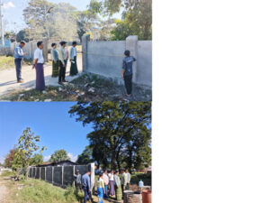 အဆိုပါကွင်းဆင်းဆောင်ရွက်ရာတွင် မြို့နယ်တည်ဆောက်ရေးလုပ်ငန်းစိစစ်ရေးကော်မတီဝင် ဌာနဆိုင်ရာတာဝန်ရှိသူများနှင့်အတူ မြို့နယ်ကျန်းမာရေးဦးစီးဌာန၏ ၂၀၂၅-၂၀၂၆ ဘဏ္ဍာရေးနှစ် ပြည်ထောင်စုခွင့်ပြုရန်ပုံငွေကျပ်(၆၅.၉)သန်းဖြင့် တင်ဒါအောင်မြင်ခဲ့သော ရှမ်းသစ်လွင်ကုမ္ပဏီမှ တာဝန်ယူအကောင်အထည်ဖော်ဆောင်ရွက်နေသည့် မြို့နယ်ပြည်သူ့ဆေးရုံ အုတ်ခြံစည်းရိုးကာရံခြင်း လုပ်ငန်းအား(၁၄၉၂ပေ) ၇၅% ဆောင်ရွက်ပြီးစီးမှုနှင့်ပတ်သက်၍ အမှန်တကယ်ပြီးစီးမှုရှိ/မရှိ အခြေ အနေအား ကွင်းဆင်းကြည့်ရှုစစ်ဆေးခဲ့ကြောင်းသိရသည်။