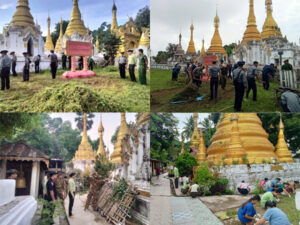 ထိုသို့ ဆောင်ရွက်ရာတွင် မြို့နယ်အတွင်းရှိဌာနဆိုင်ရာဝန်ထမ်းများ၊ နယ်မြေခံတပ်မတော်သား များတို့က နန်းဖတ်ခုမ်စေတီတော် ဘုန်းကြီးကျောင်းဝန်းအတွင်း/အပြင်တွင် ဘုရားရုပ်ပွားတော်များအား ရောင်တော်ဖွင့်သန့်ရှင်းရေးပြုလုပ်ပေးခြင်း၊ စေတီပုထိုးပေါ်ပေါက်ရောက်နေသောပေါင်းပင်များရှင်းလင်း ခြင်း၊ သစ်ပင်သစ်ကိုင်းများခုတ်ထွင်ရှင်းလင်းခြင်း၊ ချုံနွယ်ပိတ်ပေါင်းများနှင့် အမှိုက်သရိုက်များရှင်းလင်း ခြင်း၊ မြက်များခုတ်ထွင်ရှင်းလင်းခြင်းလုပ်ငန်းများကို တက်ညီလက်ညီစုပေါင်းဆောင်ရွက်ခဲ့ကြကြောင်း သိရသည်။