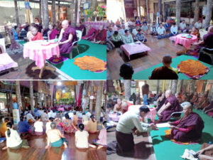 အခမ်းအနားတွင်နမောတဿသုံးကြိမ်ရွတ်ဆို ပူဇော်ဘုရားကန်တော့ဖွင့်လှစ်ပြီး အစည်းအဝေး သဘာပတိဆရာတော်က အစည်းအဝေးဖွင့်သြဝါဒကထာမြွက်ကြားတော်မူပြီး မြို့နယ်စီမံအုပ်ချုပ်ရေး အဖွဲ့ဥက္ကဋ္ဌ မြို့နယ်အုပ်ချုပ်ရေးမှူးဦးမင်းသက်နိုင်က သာသနာရေးဆိုင်ရာများနှင့်ပတ်သက်၍ ရှင်းလင်း လျောက်ထားပြီး ဇူလိုင်လ၁၁ရက်နေ့က ဘဝနတ်ထံပျံလွန်တော်မူသွားသော မြို့နယ်သံဃာ့နာယက အကျိုးတော်ဆောင်ဆရာတော်(နန်းဖတ်ခုမ်ကျောင်းထိုင်ဆရာတော်)အစား မြို့နယ်သံဃာ့နာယက အကျိုးတော်ဆောင်ဆရာတော်အဖြစ် ကမ္မဋ္ဌာန်းတိုက်ဆရာတော် ဘဒ္ဒန္တဓမ္မနန္တနှင့် နန်းဖတ်ခုမ် ကျောင်းထိုင်ဆရာတော်အဖြစ် အောင်မင်္ဂလာမွေတော်စာသင်တိုက် စာချဆရာတော်ဘဒ္ဒန္တကုသလ အား သံဃစည်းမျဉ်းလုပ်ထုံးလုပ်နည်းနှင့်အညီရွေးချယ်၍ ကျောင်းထိုင်လက်မှတ်အသိအမှတ်ပြုလွှာ အားဆက်ကပ်လှူဒါန်း၍ အစီအစဉ်အတိုင်းဆောင်ရွက်ခဲ့ပြီး အခမ်းအနားသို့ မြို့နယ်သံဃာ့နာယက ဥက္ကဋ္ဌဆရာတော်နှင့် မြို့နယ်အတွင်းရှိကျောင်းထိုင်ဆရာတော်/သံဃာတော်များ၊မြို့နယ်စီမံအုပ်ချုပ်ရေး အဖွဲ့ဥက္ကဋ္ဌနှင့်အဖွဲ့ဝင်များ၊ ဌာနဆိုင်ရာအကြီးအကဲများ၊ မြို့နယ်ဂေါပကအဖွဲ့များနှင့်တာဝန်ရှိသူများ တက်ရောက်ပြီး အခမ်းအနားကို ဗုဒ္ဓသာသနံစိရံတိဌတု သုံးကြိမ်ရွတ်ဆိုပူဇော်၍ အခမ်းအနားရုပ်သိမ်းခဲ့ ကြောင်းသိရသည်။