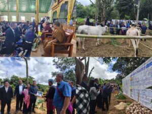အဆိုပါလေ့လာရေးအဖွဲ့သည် စိန်းပန်းဘုန်းတော်ကြီးကျောင်းအနီး၌ မယ့်ဖားလုံဖောင် ဒေးရှင်းမှ ပံ့ပိုးထားသည့် စိုက်ပျိုးရေးထွက်ကုန်များ၊ မွေးမြူးရေးကျွဲ၊ နွားများ၊ လုပ်ငန်းသုံး ပစ္စည်းများနှင့် ကျောင်းတိုက်အနီးရှိ စိုက်ပျိုးထားသည့် စီမံကိန်းကော်ဖီခြံကို ကြည့်ရူလေ့လာကာ မယ့်ဖားလုံဖောင်ဒေးရှင်းအဖွဲ့မှ Chief Development Execution Officer Mr. Narong Apichai နှင့်ကွင်းဆင်းတာဝန်ခံ မိုင်းရဲမင်းကျော်မှ သီးနှံစိုက်ပျိုးထုတ်လုပ်နိုင်မှု၊ အထွက်နှုန်း၊ ဈေးကွက်အတွင်း ပြန်လည်ရောင်းချနိုင်မှု အခြေအနေများကို ထိုင်းဘာသာစကားဖြင့် ရှင်းလင်းတင်ပြပြီး သံအမက်ကြီးနှင့် အဖွဲ့ဝင်များက စီမံကိန်းဒေသ စိုက်ပျိုးရေး၊ မွေးမြူရေး တောင်သူများနှင့် ရင်းရင်းနှီးနှီးတွေ့ဆုံသည်။ ထို့နောက် သံအမှတ်ကြီးနှင့်ဒေသခံပြည်သူများက သံဃာတော်များကို လှူဖွယ်ပစ္စည်းများ ဆက်ကပ်လှူဒါန်းပြီး သံဃာတော်အရှင်သူမြက်များထံမှ ငါးပါးသီလကို ခံယူဆောက်တည်ခဲ့ သည်။ စီမံကိန်းဒေသလေ့လားရေးအဖွဲ့များက ဒေသခံမွေးမြူရေးတောင်သူများကို မွေးမြူရေးကျွဲ၊ နွားများပေးအပ်ခဲ့ပြီး စုပေါင်းအမှတ်တရ မှတ်တမ်းဓါတ်ပုံရိုက်ခဲ့ ကြောင်း သိရသည်။