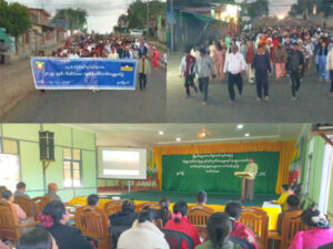 လူထုစုပေါင်းလမ်းလျှောက်ပွဲကို ဓနုကိုယ်ပိုင်အုပ်ချုပ်ခွင့်ရဒေသစီမံအုပ်ချုပ်ရေးအဖွဲ့ဥက္ကဌ၏ လမ်းညွှန်မှုဖြင့် မြို့နယ်စီအုပ်ချုပ်ရေးအဖွဲ့ဥက္ကဌဦးသိန်းဆိုင်က ဦးဆောင်ကာ မြို့နယ်စီမံအုပ်ချုပ်ရေးအဖွဲ့ဝင်များ၊ မြို့နယ်အဆင့်ဌာနဆိုင်ရာများ၊ ရပ်ကွက်အုပ်ချုပ်ရေးမှူးများ ၊ လူမှုရေးအသင်းအဖွဲ့များ၊ ကျောင်းဆရာ/ဆရာမများ၊ ကျောင်းသား /ကျောင်းသူများနှင့် ဒေသခံပြည်သူများတက်ရောက်ခဲ့ကြပြီး ရွာငံမြို့ ၊ မြို့ဦးမင်္ဂလာကျောင်းကြီးရှေ့ ၊ ပြည်သာယာလမ်းမ၌ စုရပ်အဖြစ်သတ်မှတ်ကာ စုပေါင်းလမ်းလျှောက်ခဲ့ကြပြီး အထက(ရွာငံ)ကျောင်းဝန်းအတွင်း၌ ကိုယ်ကာယလေ့ကျင့်ခန်းများ ၊ သွေးပူလေ့ကျင့်ခန်းများစုပေါင်း ပြုလုပ်ခဲ့ကြသည်။