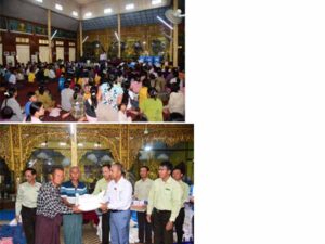 ယင်းနောက် ပြည်နယ်ဝန်ကြီးချုပ်နှင့်အဖွဲ့သည် ယာယီဆေးခန်းဖွင့်လှစ်နိုင်ရန်အတွက် နောင်ချိုမြို့၊ ဗုဒ္ဓသာသနာ့ ရောင်ခြည်ဗိမာန်တော်ကြီးအား သွားရောက်ကြည့်ရှုပြီး ဟော်တော်ဘုန်းတော်ကြီးကျောင်းသို့သွားရောက်ကာ ကျောင်းထိုင် ဆရာတော်အား ဖူးမြော်ကြည်ညို၍ လှူဖွယ်ဝတ္ထုပစ္စည်းနှင့် နဝကမ္မအလှူငွေများ ဆက်ကပ်လှူဒါန်းပေးကြပြီး နောင်ချိုမြို့ သို့ ပြန်လည်ဝင်ရောက်လာသော ဒေသခံပြည်သူများနှင့်တွေ့ဆုံရာ ပြည်နယ်ဝန်ကြီးချုပ်က ဒေသခံတိုင်းရင်းသားပြည်သူ များ ပြန်လည်ရောက်ရှိရေးအတွက် ဆောင်ရွက်ပေးနေပါကြောင်း၊ ပြည်သူများစားသောက်ရေးအတွက် ထောက်ပံ့ပေးသွား မည်ဖြစ်ကြောင်း၊ နောင်ချိုမြို့ကို ယခင်အခြေအနေအတိုင်း ပြန်လည်ရောက်ရှိအောင် ဆောင်ရွက်ပေးသွားမည်ဖြစ်ကြောင်း၊ ပညာရေး၊ ကျန်းမာရေးနှင့် မြို့သန့်ရှင်းသာယာလှပရေးအတွက် နဂိုမူလအတိုင်း ပြန်လည်ရောက်ရှိအောင် ဆောင်ရွက်ပေး သွားမည်ဖြစ်ပြီး ပြည်သူများကလည်း ဝိုင်းဝန်းပူးပေါင်းဆောင်ရွက်ပေးကြရန်၊ ပညာရေးနှင့်ကျန်းမာရေးကဏ္ဍတွင် ယာယီ ဖွင့်လှစ် ဆောင်ရွက်ပေးသွားမည်ဖြစ်၍ ဒေသခံပြည်သူလူထုမှ ပါဝင်ဆောင်ရွက်ပေးရန်လိုအပ်ပါကြောင်း၊ လျှပ်စစ်မီး ရရှိရေးကိုလည်း ဆောင်ရွက်ပေးသွားမည်ဖြစ်ကြောင်းနှင့် ပြည်သူများကို အိမ်ထောင်စုတစ်စုလျှင် ဆန်(၈)ပြည်၊ ဆီ(၁)ပိဿ၊ ကုလားပဲ၊ ငါးပိတို့ကို ထောက်ပံ့ပေးအပ်သွားမည်ဖြစ်ကြောင်း ပြောကြားသည်။