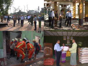 ယခုအခါ ပအိုဝ်းကိုယ်ပိုင်အုပ်ချုပ်ခွင့်ရဒေသ ဆီဆိုင်မြို့ပြန်လည်ထူထောင်ရေးအတွက် ဧပြီ ၂၅ ရက်၊ နံနက် ၈ နာရီခွဲက ရှမ်းပြည်နယ်ဝန်ကြီးချုပ် ဦးအောင်အောင်၊ ပြည်နယ်ဝန်ကြီးများ၊ စစ်ဘက်ဆိုင်ရာ အရာရှိကြီးများ၊ ပြည်နယ်/ခရိုင်/ မြို့နယ်အဆင့် ဌာနဆိုင်ရာများ၊ တာဝန်ရှိသူများနှင့်အတူ ပျက်စီးဆုံးရှုံးသွားသော မြို့ပြနှင့် အိမ်ယာ ဖွံ့ဖြိုးရေးဦးစီးဌာန၊ ဝန်ထမ်းအိမ်ရာများ၊ ဈေးများ၊ ဇဝနာရာမစာသင်တိုက် ဘုန်းတော်ဦးကျောင်း၊ မြို့နယ်ရဲစခန်း၊ မြို့နယ်ပြည်သူ့ဆေးရုံတို့တွင် ဒေသခံပြည်သူများ၊ မီးသတ်တပ်ဖွဲ့ဝင်များတို့မှ သန့်ရှင်းဆောင်ရွက်နေမှုများအား ကွင်းဆင်းကြည့်ရှု၍ လိုအပ်သည်များကို ပြည်နယ်ဝန်ကြီးချုပ်က မှာကြားခဲ့သည်။