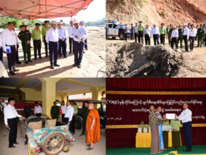 ယင်းနောက် ရာဂီမုန်တိုင်းကြောင့်ထိခိုက်ပျက်စီးမှုများအတွက် ထောက်ပံ့ငွေပေးအပ်ခြင်းနှင့် ပြန်လည်ထူထောင်ရေးလုပ်ငန်းများတွင် အလှူငွေများထည့်ဝင်ပေးသည့် အလှူရှင်များအား ဂုဏ်ပြုမှတ်တမ်းလွှာများကို ရှမ်းပြည်နယ်ဝန်ကြီးချုပ် ဦးအောင်အောင် က မိုင်းဆတ်ခရိုင် နယ်မြေအတွင်း ဝမ်ဟုန်ဒေသမှ ထိခိုက်ဆုံးရှုံးမှုများဖြစ်ပေါ်ခဲ့သည့် သီးနှံစုံစိုက်ခင်း (၃၆၁၁) ဧကအတွက် အမျိုးသားသဘာဝဘေးကော်မတီမှ မျိုးစပါးနှင့်မျိုးစေ့များဝယ်ယူရန်အတွက် ထောက်ပံ့ပေးအပ်သည့် ထောက်ပံ့ငွေကျပ် (၁၉၇.၁) သန်း တာချီလိတ်မြို့နယ်မှ နေအိမ် (၁၀၄) လုံး အတွက် စုစုပေါင်းထောက်ပံ့ငွေကျပ် (၂၂၄.၆) သန်းနှင့် ပြန်လည်ထူထောင်ရေးလုပ်ငန်းများတွင် အလှူငွေများထည့်ဝင်ပေးကြသည့် အလှူရှင်များအား ဂုဏ်ပြုမှတ်တမ်းလွှာများပေးအပ်ရာ ရေဘေးသင့်ပြည်သူများနှင့် အလှူရှင်များမှ လက်ခံရယူကြသည်။