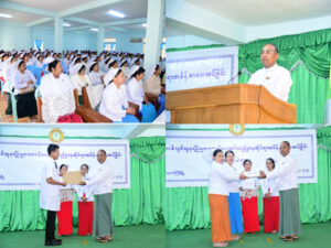 ထို့နောက် ရှမ်းပြည်နယ်အစိုးရအဖွဲ့က ပြည်သူ့စစ်မှုထမ်းသင်တန်း အမှတ်စဥ် (၈/၂၀၂၄) သင်တန်းအတွက် ချီးမြှင့်ငွေများကို ပြည်နယ်ဝန်ကြီးချုပ်ကပေးအပ်ရာ တပ်မတော်ကွန်ပျူတာနှင့် နည်းပညာသိပ္ပံကျောင်း၊ ကျောင်းအုပ်ကြီးမှလက်ခံယူပြီး၊ ပြည်နယ်ဝန်ကြီးချုပ်နှင့် တာဝန်ရှိ သူများသည် ပြည်သူ့စစ်မှုထမ်းသင်တန်းသားများအား ရင်းရင်းနှီးနှီးလိုက်လံနှုတ်ဆက်ကြသည်။ အဆိုပါ ပြည်သူ့စစ်မှုထမ်းသင်၀ာန်းအမှတ်စဥ်(၈/၂၀၂၄)အား သင်တန်းသား(၃၆၅)ဦး တက်ရောက်ကြောင်းသိရှိရသည်။