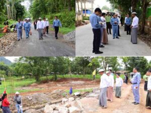 ရှမ်းပြည်နယ်အစိုးရအဖွဲ့ ပြည်နယ်ဝန်ကြီးချုပ် ဦးအောင်အောင်၊ ပြည်နယ်ဝန်ကြီးများ၊ ပြည်နယ်ဥပဒေချုပ်၊ ပြည်နယ်၊ ခရိုင်၊ မြို့နယ်အဆင့်ဌာနဆိုင်ရာများ၊ တာဝန်ရှိသူများနှင့်အတူ ဇွန်(၂၇)ရက်နံနက်(၉) နာရီအချိန်တွင် တောင်ကြီးမြို့ သန့်ရှင်းသာယာလှပရေး၊ လမ်းများ ပိုမိုကောင်းမွန်လာစေရေးအတွက် တောင်ကြီးမြို့၊ ပြည်ထောင်စုလမ်းမကြီးမှ ရွှေဘုန်းပွင့်စေတီတော်မြတ်ကြီးသို့ အတက်လမ်းထောင့်ရှိ လုံခြုံရေးဂိတ် ခြံစည်းရိုးအုတ်တံတိုင်း ကာရံခြင်းလုပ်ငန်းခွင်နှင့် ပြည်နယ်စည်ပင်သာယာရေးဌာနနှင့် စိန်နှင်းဆီကုမ္ပဏီတို့ ပူးပေါင်း၍ လမ်းတိုးချဲ့ပြီး နိုင်လွန်ကတ္တရာခင်းခြင်း ဆောင်ရွက်သည့်လုပ်ငန်းခွင်သို့ရောက်ရှိရာ သက်ဆိုင်ရာတာဝန်ရှိသူများက လုပ်ငန်းဆောင်ရွက်နေမှု အခြေအနေများအားတင်ပြကြပြီး ပြည်နယ်ဝန်ကြီးချုပ်က လမ်းများ ရေရှည်ကောင်း မွန်စွာအသုံးပြုနိုင်ရေးအတွက် သတ်မှတ်စံချိန် စံညွှန်းပြည့်မီအောင် စနစ်တကျဆောင်ရွက်ရန်နှင့် သတ်မှတ်ကာလအတွင်း အချိန်မီပြီးစီးအောင် ဆောင်ရွက်ပေးကြရန် တာဝန်ရှိသူများအား မှာကြားခဲ့သည်။