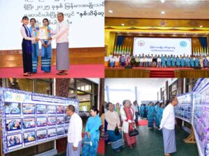 ယင်းနောက် ” အမျိုးသမီးများဖွံ့ဖြိုးတိုးတက်ရေးဆိုင်ရာ သမိုင်းမှတ်တိုင်များ ” Video Clip အားပြသပြီး ထူးချွန်အမျိုးသမီးများအား ဂုဏ်ပြုဆုများပေးအပ်ချီးမြှင့်ရာ ပြည်နယ်ဝန်ကြီးချုပ်ဦးအောင်အောင်က ဆောင်းပါးပြိုင်ပွဲတွင် ဆုရရှိသူများအား လည်းကောင်း၊ အခြေခံ ပညာအထက်တန်းကျောင်းများမှ စာစီစာကုံးပြိုင်ပွဲတွင် ဆုရရှိခဲ့သူများအား ပြည်နယ် အမျိုးသမီးရေးရာအဖွဲ့ နာယက ပြည်နယ်ဝန်ကြီးချုပ်၏ဇနီး ဒေါ်ညိုမီစောက လည်းကောင်း ဆုများပေးအပ်ချီးမြှင့်ကြသည်။
