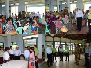 ယင်းနောက် နောင်ချိုမြို့၊ ဗုဒ္ဓသာသနာ့ရောင်ခြည်ဗိမာန်တော်တွင် ဒေသခံပြည်သူများအား တပ်မတော် ဆေးတပ်ဖွဲ့နှင့် ကျန်းမာရေးဝန်ထမ်းများမှ ဆေးကုသပေးနေမှုကို ပြည်နယ်ဝန်ကြီးချုပ်နှင့်အဖွဲ့မှ ကြည့်ရှုပြီး ဒေသခံပြည်သူများအား ရင်းရင်းနှီးနှီး နှုတ်ဆက် အားပေးစကားပြောကြားခဲ့သည်။
