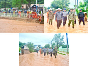 ထိုနောက် ပြည်နယ်ဝန်ကြီးချုပ်နှင့်အဖွဲ့သည် ကလောမြို့ အမှတ်(၂)ရပ်ကွက်အတွင်း ရေဝင်ရောက်နေမှုကို လိုက်လံကြည့်ရှုစစ်ဆေး၍ ကလောပြန်ကြားရေးနှင့် ပြည်သူ့ဆက်ဆံရေးဦးစီးဌာရုံး၊ ပြန်လည်တည်ဆောက်မည့် မြေနေရာအားသွားရောက်ကြည့်ရှု၍ တာဝန်ရှိသူများအား လိုအပ်သည်များ မှာကြားခဲ့ကြောင်း သိရသည်။