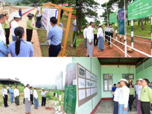 ထို့နောက် ပြည်နယ်ဝန်ကြီးချုပ်နှင့်အဖွဲ့သည် ကလောသီခေါင်ကြိုးပြင် ကာကွယ်တောတွင်ဂေဟစနစ် ဖြည့်တင်းရေးစိုက်ခင်းဖြင့် ထင်းရှူး(၇၈၀)ပင်၊ ချယ်ရီ(၄၀)ပင်၊ စိန်ပန်းနီ(၁၅)ပင်၊ စိန်ပန်းပြာ(၁၅)ပင် စုစုပေါင်းအပင် (၈၅၀)ပင်ကို ကမ္ဘောဇဘဏ်ကုမ္ပဏီလီမိတက်နှင့် ပူးပေါင်းဆောင်ရွက်မည့် စိုက်ခင်းနေရာအား သွားရောက်ကြည့်ရှုပြီး၊ တောင်ကြီးမြို့နယ်၊ ရွှေညောင်မြို့၌ မြေဧရိယာ၂.၈၂၂ဧကတွင် တိုက်နယ်ဆေးရုံအဆောက်အဦ ၄၈´×၇၂´ RC(၂)ထပ် တည်ဆောက်မည့်နေရာအား သွားရောက်ကြည့်ရှုရာ ပြည်နယ်ဝန်ကြီးချုပ်က အဆောက်အဦများ ရေရှည်တည်တံ့ကောင်းမွန်စေရန်နှင့် မလိုအပ်သည့်အဆောက်အဦများ ဖယ်ရှား၍ နောက်ထပ်တိုးချဲ့ဆောင် ရွက်နိုင်မည်ဖြစ်ကြောင်း၊ ဆေးရုံအဆောက်အဦနှင့် ဝန်ထမ်းအိမ်ရာများကို သီးခြားဆောင်ရွက်ပေးရန်လိုအပ်ပါကြောင်း၊ရွှေညောင်-ညောင်ရွှေသွားလမ်းဘေးတွင် ရောင်းချလျက်ရှိသော စျေးဆိုင်ခန်းများကိုလည်း ယာယီတဲဖြင့် ရောင်းချစေရန်ဖြစ်ကြောင်း၊ သန့်ရှင်းသပ်ရပ်စွာရှိစေရန်နှင့် အမှိုက်များလည်း စည်းကမ်းတကျ သိမ်းဆည်းပေးရန်လိုကြောင်း တာဝန်ရှိသူများအား မှာကြားခဲ့ရွှေညောင်တိုက်နယ်ဆေးရုံရှိ ဝန်ထမ်းများအား ပြည်နယ်ဝန်ကြီးချုပ်က ချီးမြင့်ငွေ ပေးအပ်ခဲ့ကြောင်း သိရသည်။