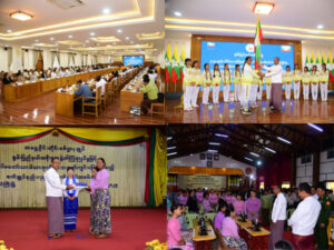 ယင်းနောက် ရှမ်းပြည်နယ်ဝန်ကြီးချုပ်ဦးအောင်အောင်က ရှမ်းပြည်နယ်အေရိုးဗစ် လက်ရွေးစင်အသင်း၊ ဘိလိယက်နှင့်စနူကာအသင်း၊ အသက် (၂၅) နှစ်အောက် အမျိုးသမီးဘောလုံး လက်ရွေးစင် အသင်းတို့ကို အောင်နိုင်ရေးအလံနှင့် ပြိုင်ပွဲကုန်ကျစရိတ်ချီးမြှင့်ငွေများပေးအပ်ရာ အသင်းအုပ်ချုပ်သူနည်းပြနှင့် အားကစားသမားများက အသီးသီးလက်ခံရယူကြသည်။