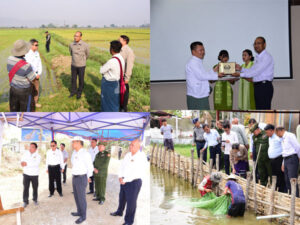 ရှမ်းပြည်နယ်အစိုးရအဖွဲ့ ပြည်နယ်ဝန်ကြီးချုပ် ဦးအောင်အောင်၊ ပြည်နယ်ဝန်ကြီးများ၊ ပြည်နယ်အဆင့် ဌာနဆိုင်ရာများနှင့်တာဝန်ရှိသူတို့သည် မတ်(၂၆)ရက် နံနက်(၈)နာရီက ရှမ်းပြည်နယ်(တောင်ပိုင်း) ကလောခရိုင်၊ ညောင်ရွှေမြို့နယ်၊ တိလောကျေးရွာတွင် တောင်သူ ဦးဌေးမှ(၃.၂)ဧက စိုက်ပျိုးထားသော နွေစပါး ရွှေအပ်မျိုး စိုက်ခင်း အား သွားရောက်ကြည့်ရှုစစ်ဆေးပြီး ပြည်နယ်ဝန်ကြီးချုပ်က လိုအပ်သည်များ ဖြည့်စွက်မှာကြား၍ ကောက်စိုက်သမ များမှ ပျိုးပင်စိုက်ပျိုးနေမှုကို ကြည့်ရှုကြကြောင်းသိရသည်။