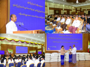 ရှမ်းပြည်နယ်အစိုးရအဖွဲ့က ရှမ်းပြည်နယ်လွှတ်တော်ရုံးနှင့် ရှမ်းပြည်နယ်တရားလွှတ်တော်ရုံး ဝန်ထမ်းများအား ဆန်၊ ဆီပစ္စည်းများ ထောက်ပံ့ပေးအပ်ခြင်းကို ဇွန်(၄)ရက် မွန်းလွဲ(၂)နာရီက တောင်ကြီးမြို့၊ ရှမ်းပြည်နယ်လွှတ်တော် ရုံး၌ ကျင်းပသည်။