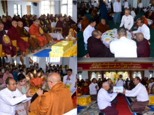 ဆက်လက်၍ ရှမ်းပြည်နယ်ဝန်ကြီးချုပ် ဦးအောင်အောင်နှင့်ဇနီး၊ အရှေပိုင်းတိုင်းစစ်ဌာနချုပ်တိုင်းမှူး၏ဇနီး၊ ပြည်နယ်တရားလွှတ်တော် တရားသူကြီးချုပ် ပြည်နယ်ဝန်ကြီးများ၊ ပြည်နယ်ဥပဒေချုပ်၊ ပြည်နယ်ခရိုင်၊ မြို့နယ်အဆင့်ဌာနဆိုင်ရာများ၊ အလှူရှင်များက ဆရာတော်၊ သံဃာတော်များအား ဝါဆိုသင်္ကန်းနှင့် လှူဖွယ်ပစ္စည်းများ ဆက်ကပ်လှူဒါန်းပေးကြပြီး အလှူတော်ငွေများ ပေးအပ်လှူဒါန်းရာ သာသနာလင်္ကာရ ကမ္ဗောဇသာသနာ့ဗိမာန်အတွက် ရှမ်းပြည်နယ်အစိုးရအဖွဲ့က ငွေကျပ်သိန်း(၁၀၀)ကို ပြည်နယ်ဝန်ကြီးချုပ် ဦးအောင်အောင်က ပေးအပ်လှူဒါန်းရာ သာသနာဗိမာန်ဂေါပကတာဝန်ရှိသူများမှ လက်ခံရယူ၍ ဂုဏ်ပြုမှတ်တမ်းလွှာများ ပြန်လည်ပေးအပ်ခဲ့ကြသည်။