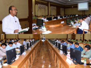 ဆက်လက်၍ ရှမ်းပြည်နယ်အစိုးရအဖွဲ့၊ စီးပွားရေးရာဝန်ကြီးဦးခွန်သိန်းမောင်က ရှမ်းပြည်နယ် အသေးစား၊ အငယ်စားနှင့် အလတ်စား စီးပွားရေးလုပ်ငန်းများ ဖွံ့ဖြိုးတိုးတက်ရေးနှင့် နိုင်ငံ့စီးပွား မြှင့်တင်ရေးရန်ပုံငွေနှင့် ပတ်သက်၍ ဆွေးနွေးတင်ပြပြီး၊ ပြည်နယ်စက်မှုကြီးကြပ်နှင့် စစ်ဆေးရေးဦးစီးဌာန၊ ဦးစီးမှူး ဦးမျိုးလွင်က ရှမ်းပြည်နယ် အသေးစား၊ အငယ်စားနှင့် အလတ်စားစီးပွားရေးလုပ်ငန်းများ ဖွံ့ဖြိုးတိုးတက်ရေး ဆောင်ရွက်ထားရှိမှုအခြေအနေများကို ရှင်းလင်းတင်ပြကြသည်။
