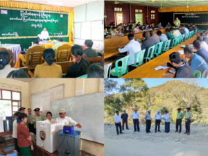 ဆက်လက်၍ မိုင်းပန်မြို့နယ်စီမံခန့်ခွဲရေးနှင့်အုပ်ချုပ်ရေးကော်မတီဥက္ကဋ္ဌ၊ မြို့နယ်အုပ်ချုပ်ရေးမှူးသည် မိုင်းပန်မြို့၊ အနောက်ရပ်ကွက်ရှိ မြို့နယ်စဝ်ကောလီခန်းမတွင် ထိန်းသိမ်းထားရှိသော MEVM မဲပေးစက်များအား သက်ဆိုင်ရာ ရပ်ကွက်/ကျေးရွာအုပ်စု မဲရုံအသီးသီးသို့ တာဝန်ခံသယ်ယူပို့ဆောင်ကြမည့် မဲရုံမှူး/ဒုမဲရုံမှူးများနှင့် အဖွဲ့ဝင်များ၊ သက်ဆိုင်ရာမဲရုံအလိုက် ကြီးကြပ်ရေးတာဝန်ချထားပေးသော မြို့နယ်အဆင့်ဌာနဆိုင် ရာများအားတွေ့ဆုံ၍ MEVM မဲပေးစက်များသယ်ယူပို့ဆောင်ရာတွင် ပျောက်ဆုံး/ပျက်စီးမှုများ မရှိစေရေးနှင့် သက်ဆိုင်ရာမဲရုံအသီးသီးသို့ အချိန်မီရောက်ရှိစေရေး လိုအပ်သည်များမှာကြား ဆောင်ရွက်ခဲ့ပါကြောင်း သိရှိရသည်။