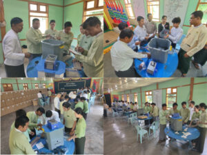 ယင်းနောက် မြို့နယ်နည်းပ ညာအထောက်အကူပြုအဖွဲ့၏ မဲပေးစက်ဆိုင်ရာများစစ်ဆေးနေမှုအခြေအနေအား မြို့နယ်အုပ်ချုပ်ရေးမှူးနှင့် မြို့ နယ်ရွေးကောက်ပွဲကော်မရှင် အဖွဲ့ခွဲဥက္ကဌဦးမင်းလွင်နှင့် တာဝန်ရှိသူတို့က လှည့်လည်ကြည့်ရှုအားပေးခဲ့ကြကြောင်း သိရသည်။
