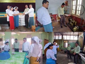 လားရှိုးမြို့၊ သူနာပြုနှင့်သားဖွားသင်တန်းကျောင်းတွင် ဇူလိုင်လ(၂၁)ရက် နေ့လယ်(၂)နာရီ၌ ပြည်နယ်ဒုတိယအုပ်ချုပ်ရေးမှူးဦးမြင့်သန်းဝင်းသည် ပြည်နယ်ပြည်သူ့ကျန်းမာရေးနှင့်ကုသရေးဦးစီးဌာနမှူး၊ သင်တန်းကျောင်းအုပ်ဆရာမကြီးတို့နှင့်အတူ သူနာပြုနှင့်သားဖွားသင်တန်းသား/ သူ (၄၅)ဦးအတွက် ဆန် (၁၀)အိတ်နှင့် ကြက်ဥ (၁၅၀) လှူဒါန်းခဲ့ပါကြောင်းနှင့် သင်တန်းကျောင်းတွင် ရေ/မီးရရှိမှုအခြေအနေများအား ကြည့်ရှုစစ်ဆေးခဲ့ပါကြောင်း သိရှိရသည်။