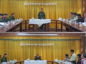 လားရှိုးမြို့၊ ပြည်နယ်ဒုတိယအထွေထွေအုပ်ချုပ်ရေးဦးစီးဌာနရုံး အစည်းအဝေးခန်းမတွင် ဇွန်လ(၂၇)ရက်၊ နေ့လယ် (၁)နာရီ၌ ပြည်နယ်အစိုးရအုပ်ချုပ်ရေးအဖွဲ့ခွဲ (ရှမ်းမြောက်) ခေတ္တဥက္ကဌ ရဲမှူးကြီးသန့်ဇင်သည် အရှေ့မြောက်တိုင်းစစ်ဌာနချုပ် တိုင်းမှူး၊ ဒုတိုင်းမှူးနှင့်အရာရှိကြီးများ၊ ပြည်နယ်ဒု/ခရိုင်/မြို့နယ်အဆင့်ဌာနဆိုင်ရာများမှတာဝန်ရှိသူများနှင့်အတူ လားရှိုးမြို့ ပြန်လည်ထူထောင်ရေးလုပ်ငန်းများနှင့် ပတ်သက်၍ တွေ့ဆုံပွဲအခမ်းအနားကျင်းပခဲ့ပါကြောင်းနှင့် အခမ်းအနားသို့ အင်အား (၈၄) ဦးတက်ရောက်ခဲ့ပါကြောင်း သိရှိရသည်။