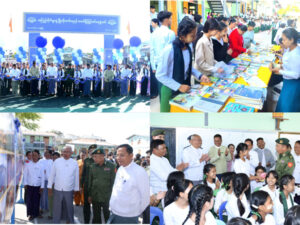 ဆက်လက်၍ စာကြည့်တိုက်များဖွံ့ဖြိုးတိုးတက်ရေးနှင့် စာဖတ်ရှိန်မြှင့်တင်ရေးပွဲတော် ဖွင့်ပွဲအခမ်းအနားကို ကျင်းပခဲ့ရာ အမှတ် ၆ အခြေခံပညာအထက်တန်းကျောင်းမှ ကျောင်းသူလေးများက “အလှဆုံးပန်းများပွင့်ကြပြီ” သီချင်းဖြင့် တေးသရုပ်ဖော် ဖျော်ဖြေတင်ဆက်၍ အခမ်းအနားအားဖွင့်လှစ်ခဲ့ပြီး ပြည်နယ်လမ်းပန်းဆက်သွယ်ရေးဝန်ကြီး ဦးနေဝင်းအောင်က စာကြည့်တိုက်များဖွံ့ဖြိုးတိုးတက်ရေးနှင့် စာဖတ်ရှိန်မြှင့်တင်ရေးပွဲတော် ကျင်းပပြုလုပ်ရခြင်းနှင့် ပတ်သက်၍ ရှင်းလင်းပြောကြားသည်။