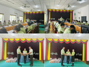 ဥက္ကဌ၊ ပြည်နယ်အစိုးရအုပ်ချုပ်ရေးအဖွဲ့ခွဲ(ရှမ်းအရှေ့) ဦးဆောင်ကျင်းပသော ဝန်ထမ်းများအား အခြေခံစားသောက်ကုန်များ ထောက်ပံ့ပေးအပ်ပွဲအခမ်းအနားကို ဇွန်(၇) ရက်၊ ညနေ(၄) နာရီတွင် ပြည်နယ်ဒုတိယအထွေထွေအုပ်ချုပ်ရေး ဦးစီးဌာန (ကျိုင်းတုံ) အစည်းအဝေးခန်းမ၌ ကျင်းပပြုလုပ်ခဲ့သည်။