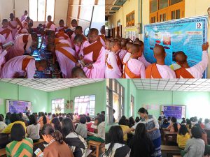 အသိပညာပေးဟောပြောပွဲတွင် ပြန်ကြားရေးနှင့်ပြည်သူ့ဆက်ဆံရေးဦးစီးဌာန၊ ပအိုဝ်း ကိုယ်ပိုင်အုပ်ချုပ်ခွင့်ရဒေသအဆင့်ရုံးမှ လက်ထောက်ညွှန်ကြားရေးမှူး ဒေါ်ခင်အိအိသန်းက လူငယ်များအနေဖြင့် ကာယ၊ ဉာဏ၊ စာရိတ္တ၊ မိတ္တ၊ ဘောဂစသည့် ဗလငါးတန်ပြည့်စုံရန်လို အပ်ကြောင်း၊ ပြည်သူ့စာကြည့်တိုက်သို့ စာပေဗဟုသုများလာရောက်ဖတ်ရှုလေ့လာနိုင်ကြောင်း၊ ကျောင်းသားလူငယ်များစည်ကမ်းပြည့်ဝပြီး စိတ်ဓာတ်စွမ်းရည်မြှင့်တင်စေရေးနှင့် အသိပညာ ဗဟုသုတပိုမိုရရှိစေရေးအတွက် ဟောပြောပွဲများပြုလုပ်ရခြင်းဖြစ်ကြောင်းပြောကြားသည်။ ထို့နောက် မြို့နယ်ဘေးအန္တရာယ်ဆိုင်ရာစီမံခန့်ခွဲမှုဦးစီးဌာနမှ မြို့နယ်ဦးစီးမှူး ဒေါ်မေဇင်ဝင်းအောင်က ကျောင်းသား၊ ကျောင်းသူများအား အယ်နီညိုရာသီဥတု ဖြစ်ပေါ်လာပုံ အကြောင်းအရာများကိုလည်းကောင်း၊ မြို့နယ်ပတ်ဝန်းကျင်ထိန်းသိမ်းရေးဦးစီးဌာနမှ ဒုတိယ လက်ထောက်ဦးစီးမှူး ဦးသန်းထိုက်စိုးက ပလတ်စတစ်ညစ်ညမ်းမှု အကြောင်းအရာများကို လည်းကောင်း အသိပညာပေးပြောပြာခဲ့ပြီးနောက် ကျောင်းသား၊ ကျောင်းသူများအား သဘာဝ ပေးအန္တရာယ်ဆိုင်ရာအသိပညာပေးလက်ကမ်းစာစောင်နှင့် ပလတ်စတစ်အသိပညာပေး လက်ကမ်းစာစောင်များဖြန်ဝေပေးခဲ့ကြောင်းသိရသည်။ ထို့နောက် နောင်တောင်း ပရဟိတ သီလရှင်ကျေင်းတွင် ပြန်ကြားရေးနှင့်ပြည်သူ့ဆက်ဆံရေးဦးစီးဌာနမှ ဝန်ထမ်းများက လူငယ်ရေးရာအသိပညာပေးဟောပြောပွဲများပြုလုပ်၍ စာစောင်များငှား ရမ်းပေးခြင်းနှင့် မူးယစ်ဆေးဝါးအန္တရာယ်နံရံကပ်စာစောင်ပြသခြင်းများ ဆောင်ရွက်ခဲ့ကြောင်း သိရသည်။