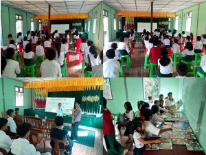 ထို့နောက် တက်ရောက်လာသောကျောင်းသား/သူများကို ဉာဏ်စမ်းပဟေဠိမေးခွန်းများ မေးမြန်းရာ ဖြေဆိုနိုင်သည့် ကျောင်းသား/သူများကို အမှတ်တရလက်ဆောင်များပေးအပ်ခဲ့ပြီး ပြန်/ဆက်ဦးစီးဌာနမှ ခင်းကျင်းပြသထားသော စာအုပ်စာစောင်များကို စိတ်ဝင်တစားလေ့လာ ဖတ်ရှု့ခဲ့ကြောင်း သိရသည်။