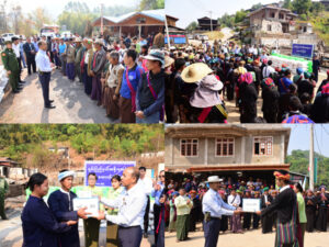 ဆက်လက်၍ PNOအသွင်ပြောင်း ပြည်သူ့စစ် (ဌာန) ဒုတိယဥက္ကဋ္ဌ ဗိုလ်မှူးကြီး ခွန်ဗီတာထွန်းနိုင်က ဒေသခံပြည်သူ များကို အားပေးစကားပြောကြား၍ ထောက်ပံ့ပစ္စည်းများ ပေးအပ်ရာ ရှမ်းပြည်နယ်ဝန်ကြီးချုပ် ဦးအောင်အောင်က ထောက်ပံ့ငွေများ ပေးအပ်ရာ ရပ်မိရပ်ဖ ဦးခွန်တမောင်းမှ လက်ခံရယူပြီး အရှေ့ပိုင်းတိုင်း စစ်ဌာနချုပ် တိုင်းမှူး ဗိုလ်ချုပ် ဇော်မင်းလတ်က စားသောက်ဖွယ်ရာ ပစ္စည်းများ ပေးအပ်ရာ မီးဘေးသင့်ပြည်သူ နှစ်ဦးမှ လက်ခံရယူကြသည်။