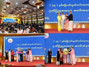 ဂုဏ်ပြုညစာစားပွဲတွင် ပအိုဝ်း၊ ရှမ်း၊ အင်း၊ ထနော့၊ တောင်ရိုး၊ ဓနု တိုင်းရင်းသားအက အဖွဲ့များမှ ကပြဖျော်ဖြေ တင်ဆက်ကြပြီး (၇၇)နှစ်မြောက်လွတ်လပ်ရေးနေ့အထိမ်းအမှတ် ရှမ်းပြည်နယ် တက္ကသိုလ်၊ ဒီဂရီကောလိပ်အဆင့်ဆောင်းပါးပြိုင်ပွဲတွင် ဆုရရှိသူများအားဆုချီးမြှင့်ရာ ပထမဆုရ တောင်ကြီးပညာရေး ဒီဂရီကောလိပ်မှ မအေးမြညိမ်း၊ ဒုတိယဆုရ တောင်ကြီးပညာရေး ဒီဂရီကောလိပ်မှ မရွန်းလဲ့ဝေ၊ တတိယဆုရ တောင်ကြီးတက္ကသိုလ် မဇင်ဝါဝါမြင့်၊ နှစ်သိမ့်ဆု(၁)ရ ကျိုင်းတုံပညာရေးကောလိပ်မှ မနန်းကလျာဦး၊ နှစ်သိမ့်ဆု(၂)ရတောင်ကြီးပညာရေး ဒီဂရီကောလိပ်မှ မခင်ပြည့်ပြည့်အေး တို့ကို အရှေ့ပိုင်းတိုင်းစစ်ဌာနချုပ်တိုင်းမှူး ဗိုလ်ချုပ်ဇော်မင်းလတ်က ဆုများ ချီးမြှင့် ပေး၍ လည်းကောင်း၊ ကဗျာပြိုင်ပွဲတွင်ပထမဆုရ မောင်ဇင်မင်းထွဋ်၊ ဒုတိယဆုရ မပန်းဖြူအေး တောင်ကြီးပညာရေး ဒီဂရီကောလိပ်၊ တတိယဆုရ မောင်ဝေဖြိုးအောင် ကျိုင်းတုံတက္ကသိုလ်၊ နှစ်သိမ့်ဆု(၁)ရ မသဲဆုဝေ နည်းပညာတက္ကသိုလ်၊ နှစ်သိမ့်ဆု(၂)ရ မအေးယုငြိမ်း တောင်ကြီးပညာရေးကောဒီဂရီကောလိပ် နှင့် တိုင်းရင်းသားအကအဖွဲ့(၆)ဖွဲ့ကို တစ်ဖွဲ့လျှင်(၅)သိန်းကျပ်ဖြင့် စုစုပေါင်းကျပ်သိန်း(၃၀)အား ဂုဏ်ပြုပေးအပ်ခြင်း၊ တိုင်းရင်းသား ကိုယ်စားလှယ်များကို ဂုဏ်ပြုပန်းခြင်း ပေးအပ်ခြင်းတို့ကို ပြည်နယ်ဝန်ကြီးချုပ် ဦးအောင်အောင် နှင့် ဇနီးတို့က ချီးမြှင့်ပေးကြကြောင်း သိရှိရသည်။